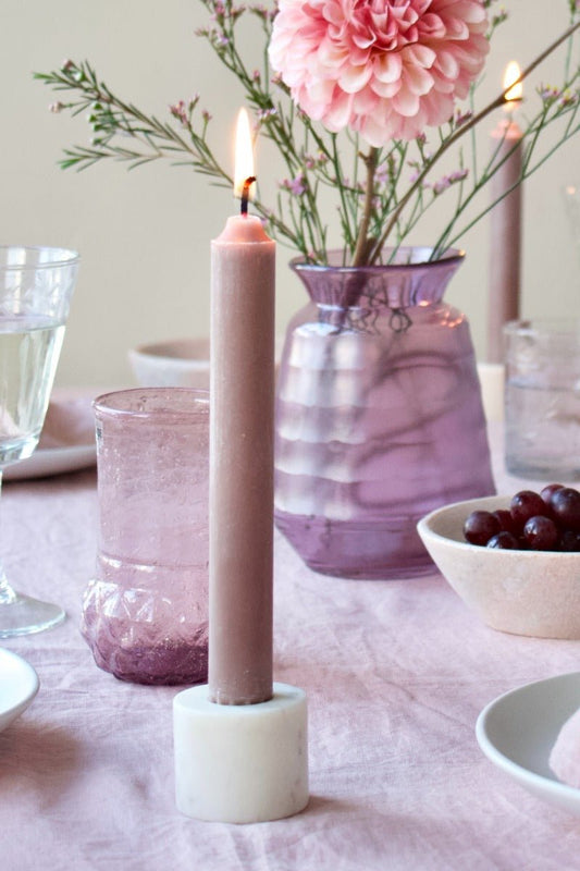 From refined brass candle holders to recycled glass and enamel designs, each piece is carefully crafted by hand. The variation in shape, finish and detailing ensures that every candle holder is unique and a true statement piece in your home.