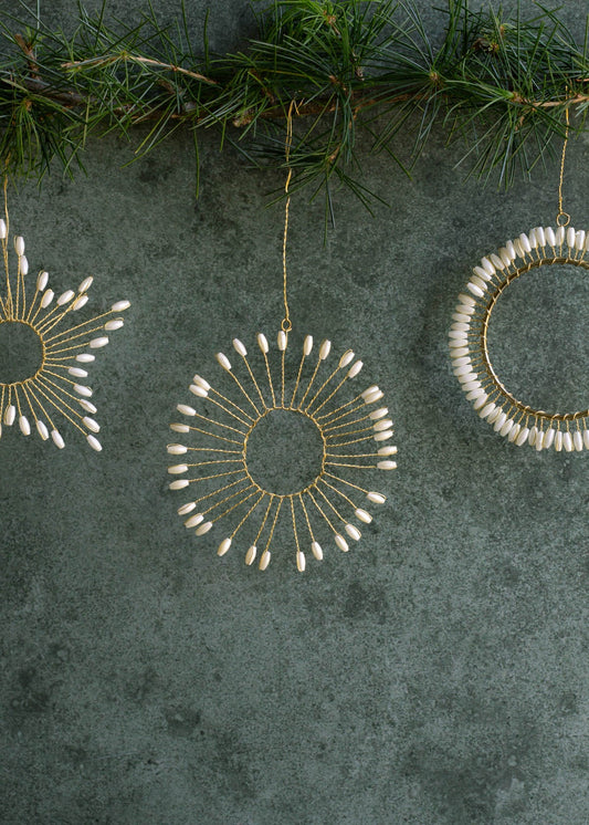 Our Christmas collection includes brass ornaments, glass baubles, and felt decorations.
