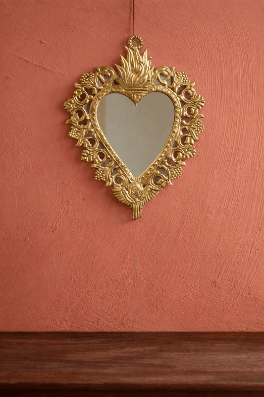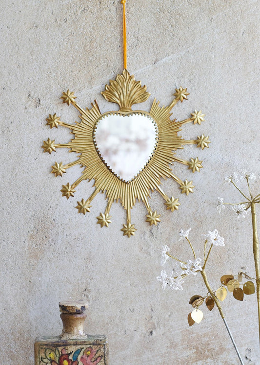 Our collection offers a wide variety of styles and sizes, including Ex-Voto mirrors with symbolic motifs, small table mirrors perfect for styling corners or vanities, and hanging mirrors that bring charm to any wall. Designs range from heart-shaped and star-shaped mirrors to striking convex mirrors with timeless appeal.