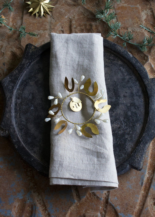 Our napkin rings include brass, beaded, and wirework designs, all created with artisanal techniques.