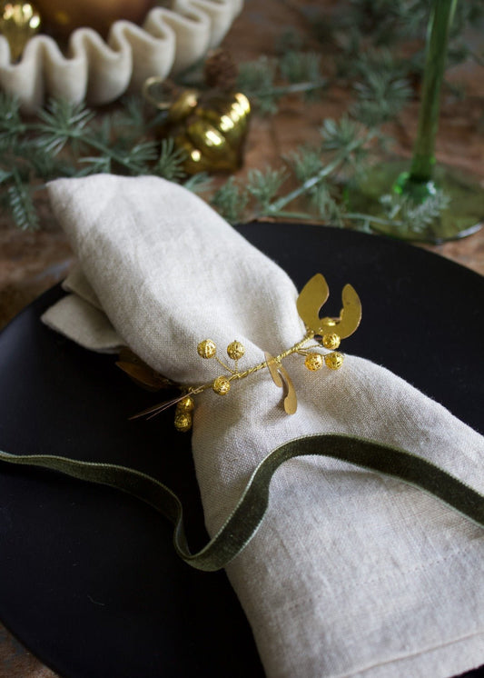 Brass Mistletoe Napkin Ring with Pearl Drops