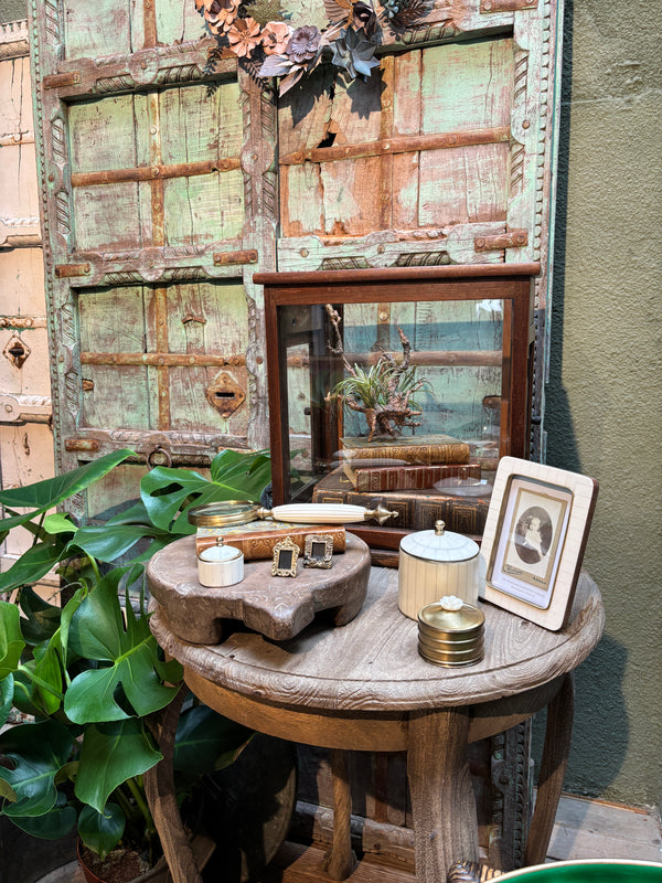 Geen machines. Geen massaproductie. Alleen echt vakmanschap. Onze collecties ontstaan uit gerecycled glas, vintage textiel en met liefde gemaakte natuurlijke materialen. Elk object draagt de hand van de maker, met kleine verschillen, rijke texturen en een verhaal dat je nooit zult vinden in iets wat uit een fabriek komt. Dat is wat onze stukken hun ziel geeft. Ze brengen warmte, karakter en een gevoel van echtheid in huis.