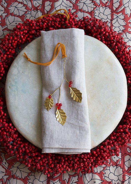 Vier de feestdagen met onze kerstboeketten, handgemaakt in Noord-India met tijdloze ambachtelijke technieken. Elke bos is zorgvuldig gevormd van draad en messing, soms versierd met kleine details die het licht vangen. Ze geven je huis een feestelijke maar toch natuurlijke touch, of je ze nu in de boom hangt, aan een tak hangt of als decoratief accent op tafel gebruikt.