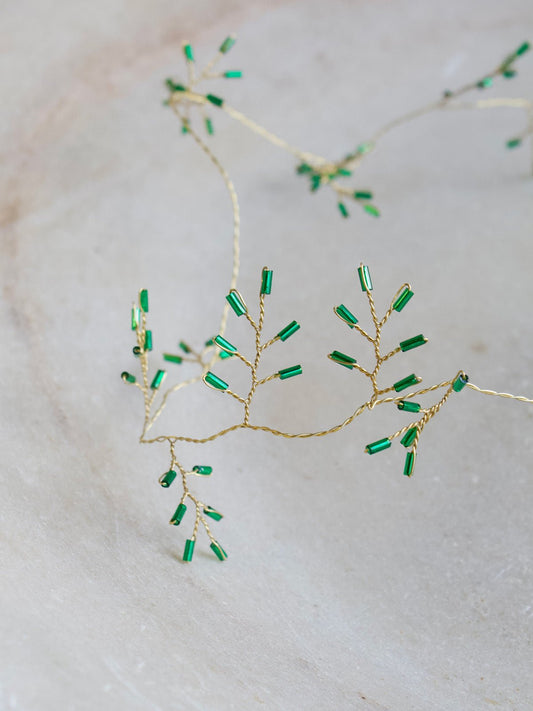 Gouden draadslinger met lichtgroene kralen