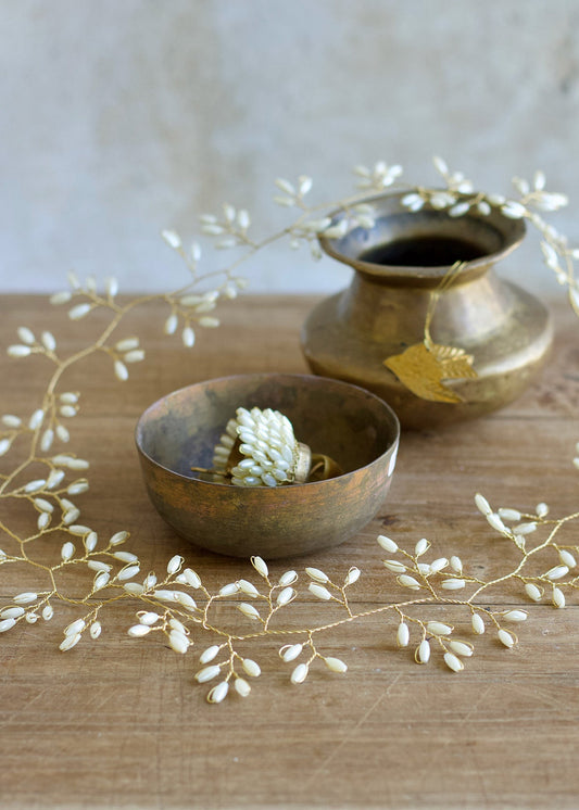 Van handgemaakte slingers van draadwerk in Zuid-India tot kralensnoeren en messing ornamenten, elk stuk wordt volledig met de hand gemaakt. De diversiteit in vormen, texturen en afwerkingen maakt onze slingers veelzijdig en tijdloos, geschikt voor elke interieurstijl.