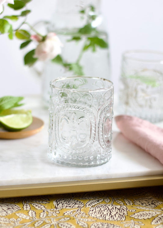 Handgemaakte lila glazen vaas met gefacetteerde voet