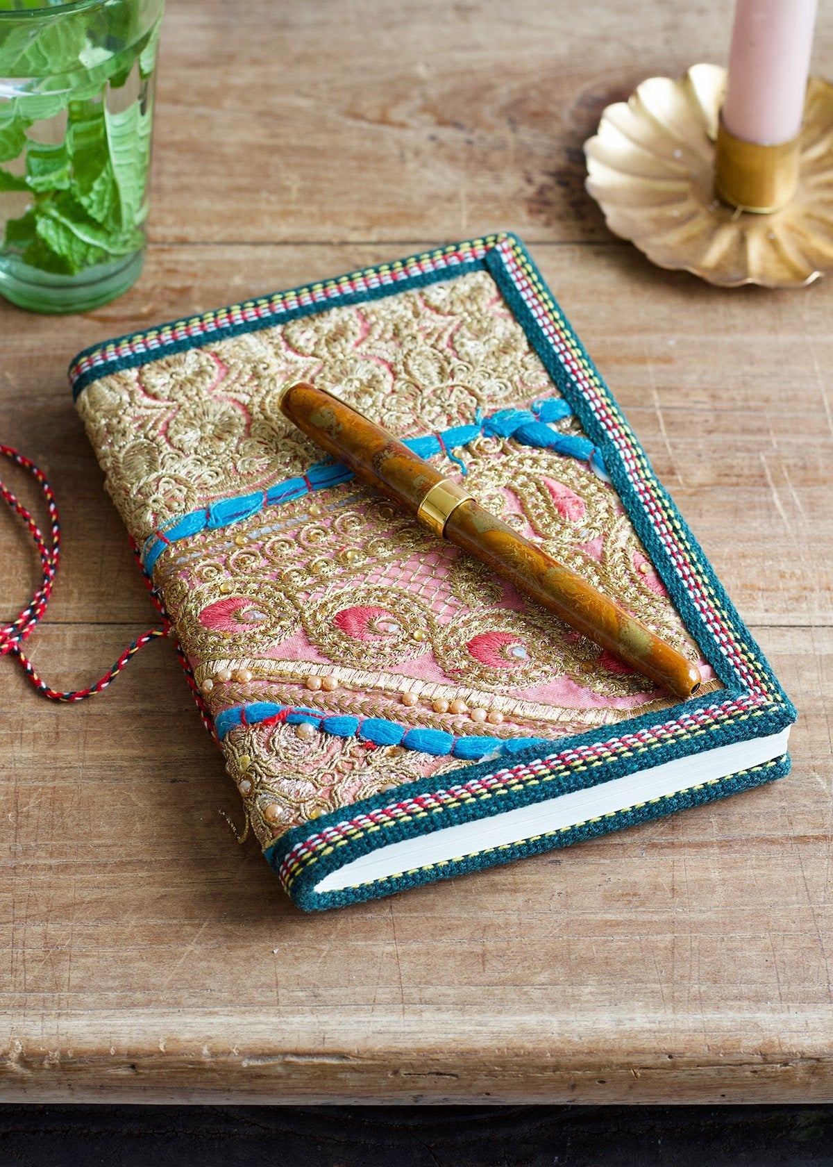 Onze Sambhali-boeken worden met de hand gestikt en gebonden, elk gemaakt van gerecyclede stoffen en papier. Geen enkel boek is ooit hetzelfde. Kleuren, texturen en patronen komen op speelse, onverwachte manieren samen. Ze zijn meer dan notitieboekjes. Het zijn kleine, karaktervolle schatten, wachtend op jouw gedachten, schetsen en verhalen.