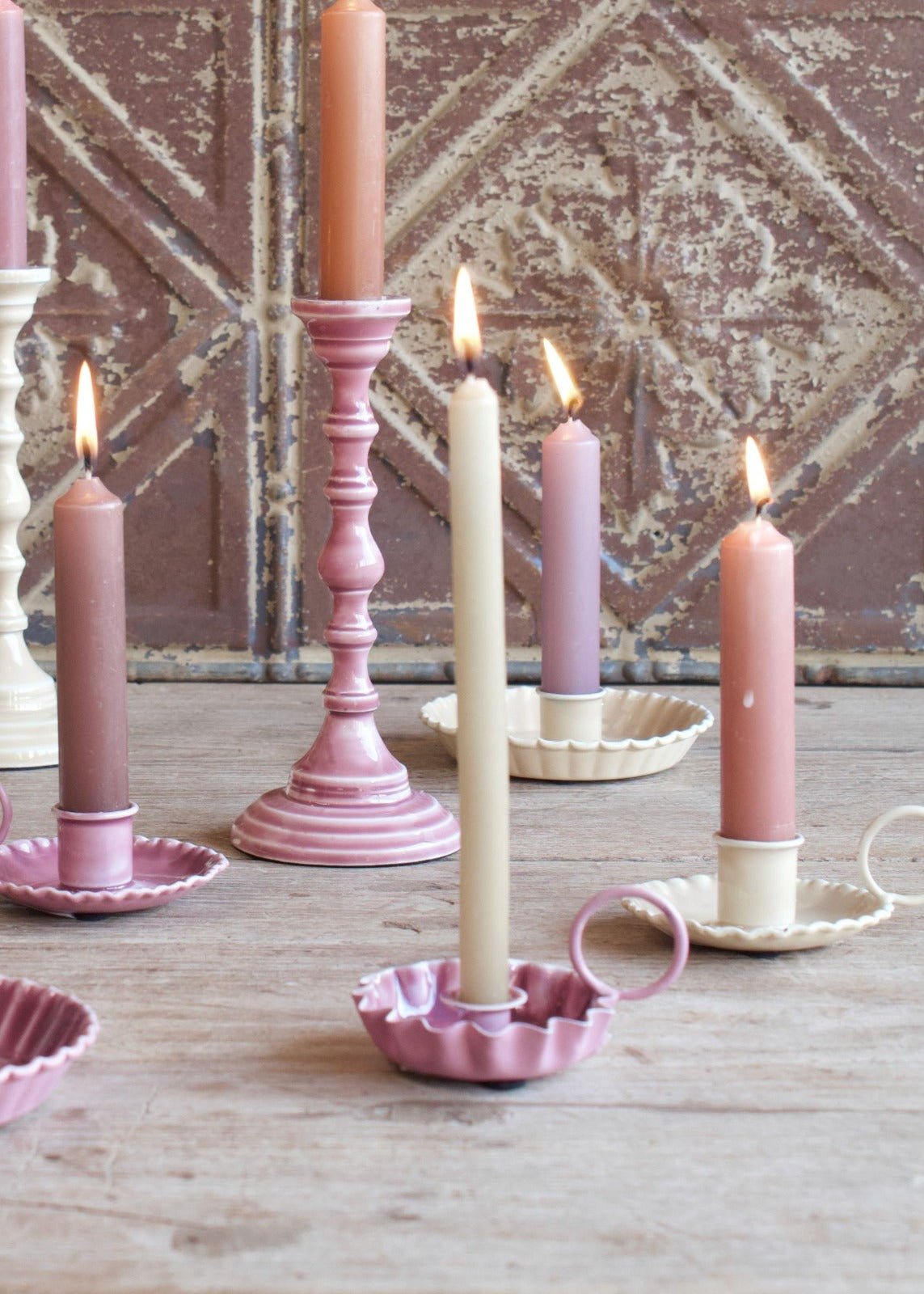 Deze handgemaakte emaille kaarsenhouder in een delicate lila tint is perfect geschikt voor een kaars van 1,2 cm. De ambachtelijke afwerking voegt een verfijnde touch toe aan elke setting en combineert subtiele kleuren met functionele elegantie. Verkrijgbaar in diverse modellen en kleuren, biedt de houder veelzijdige mogelijkheden om met vakmanschap een persoonlijke sfeer te creëren.
