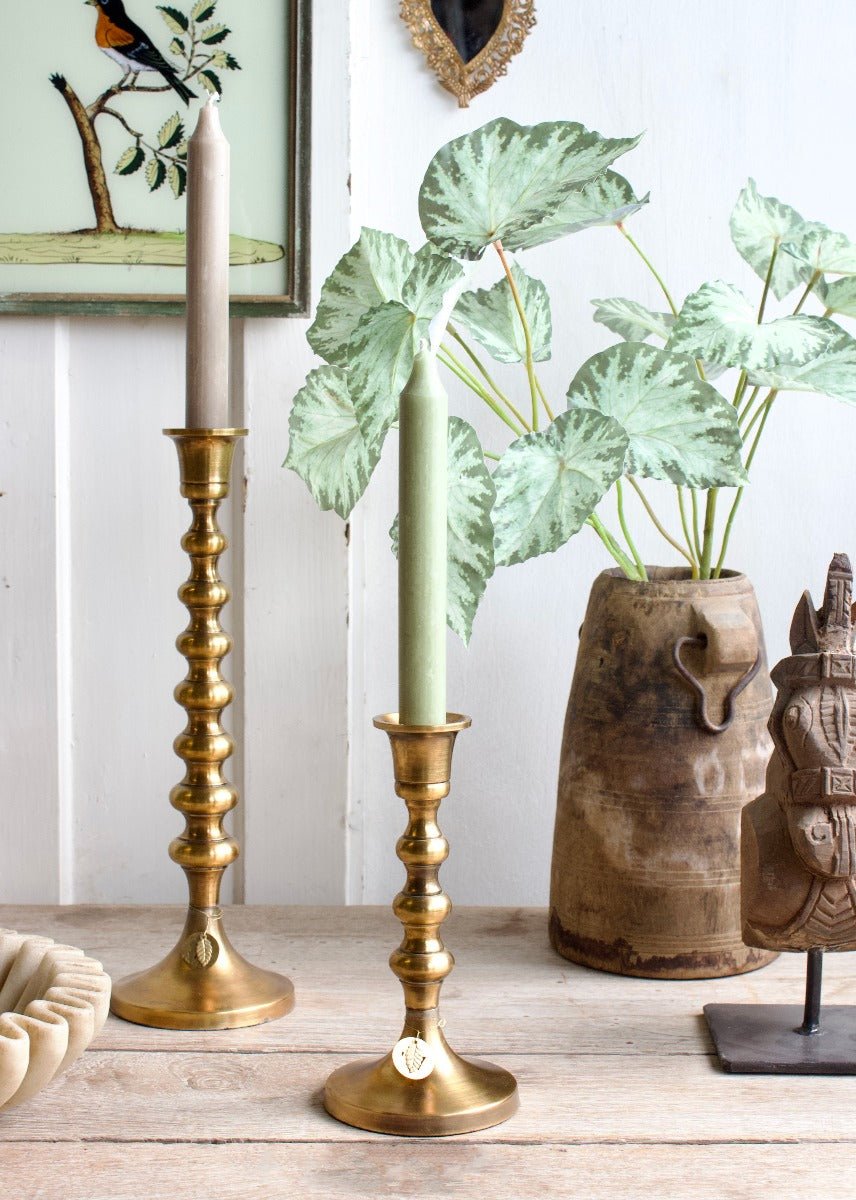 This elegant candleholder is expertly handcrafted from copper-colored metal, offering a refined touch to any interior. Its artisanal quality ensures a unique piece that enhances ambiance with warm metallic tones. Available in multiple sizes, it adapts seamlessly to various decor styles and candle types.