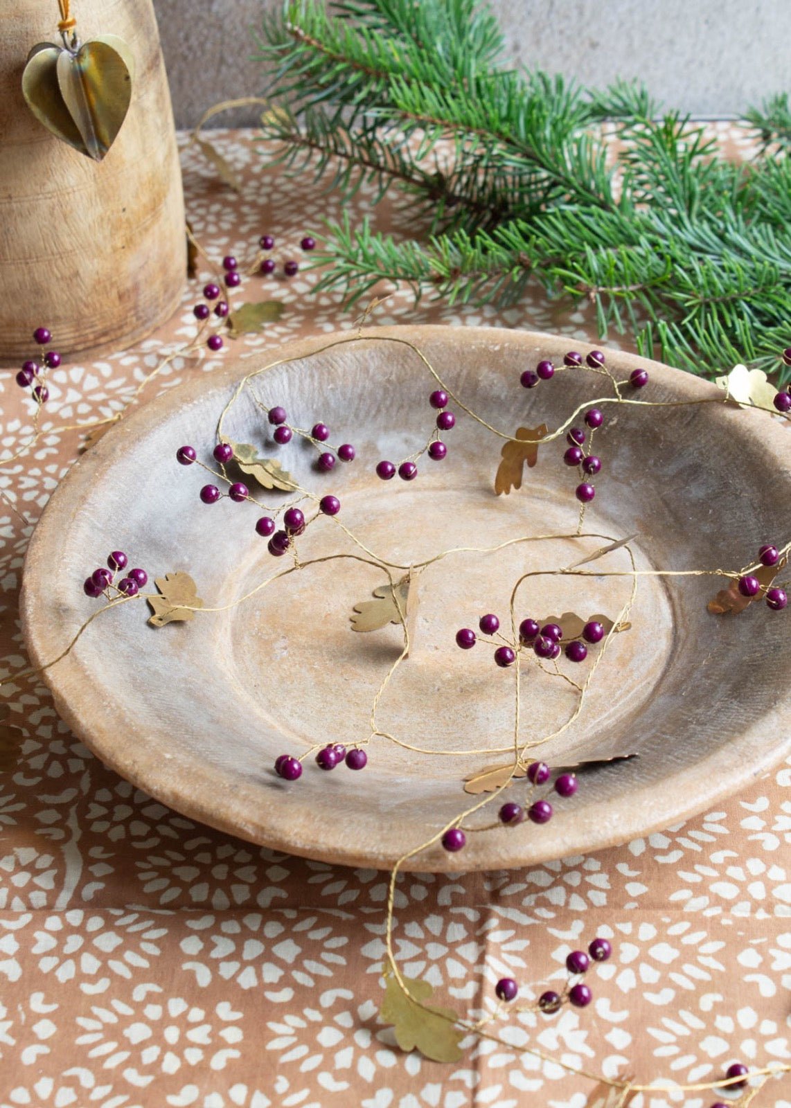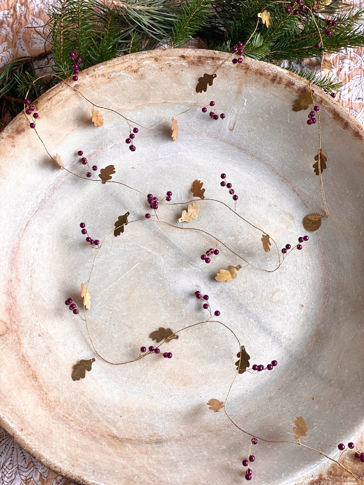 Add festive charm to your home with this handmade brass garland adorned with artificial berries. Crafted with care, it brings a warm and elegant touch to any space.