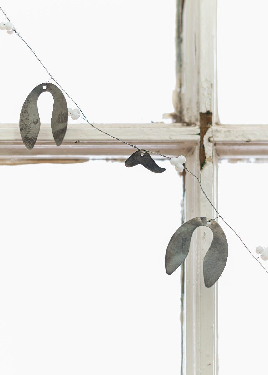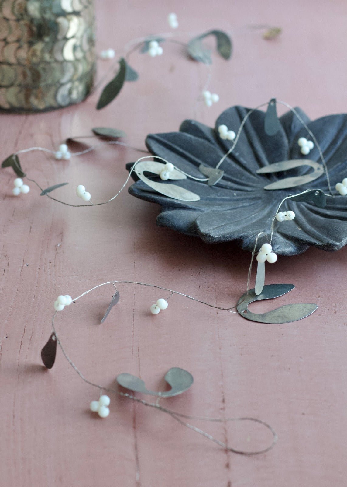 Bring a touch of holiday whimsy to your space with this charming mistletoe garland in a zinc finish. Handmade with care, it features intricate mistletoe accents that add a playful yet elegant flair to your décor. Whether draped over a mantel, wrapped around a banister, or hung across a doorway, this garland effortlessly spreads festive cheer and invites joyful moments. Its subtle metallic sheen complements any style, making your home feel merry and bright all season long. Celebrate the holidays with a sprinkle of magic and a dash of fun!